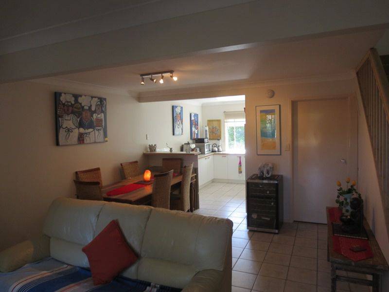 This trendy unfurnished 2 bedroom, two story townhouse has one bathroom, two toilets and is tiled downstairs, carpeted upstairs. Its a terrific unit with ocean views from veranda off huge main bedroom. Good size open living zones with separate laundry. Private fully fenced courtyard garden at front, with small deck area and under cover verandah. Single garage plus off street parking area. Block of only 5.