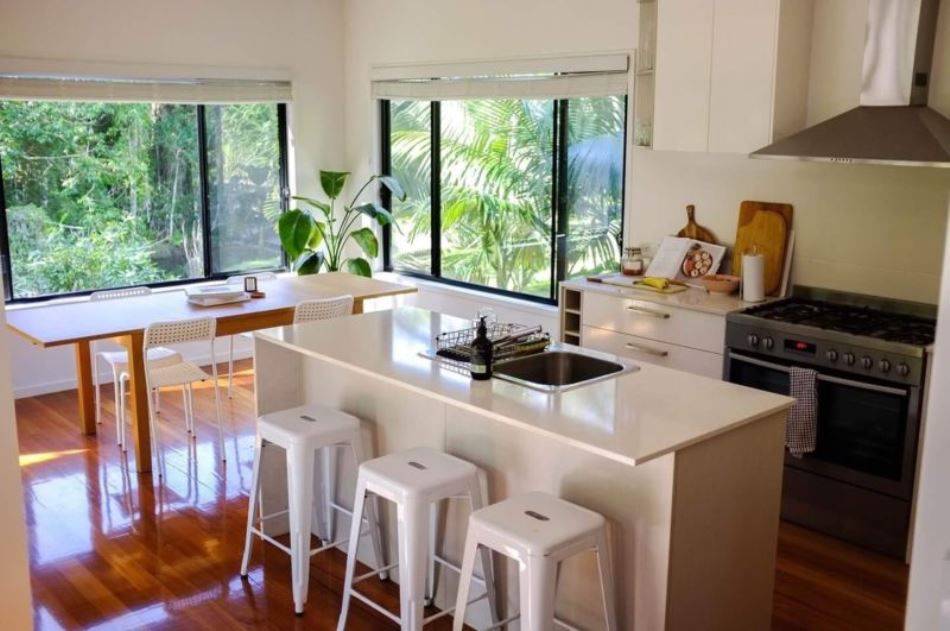 This beautiful 2 bedroom one bathroom and study nook dwelling is situated on 3 acres beside a pretty creek over looking a natural forest. This home is the second dwelling on this acreage, however designed with access and privacy in mind. The home is raised off the ground to take advantage of the views and designed to allow for breezes, with the bonus of being completely screened. Stone benches through out and quality fittings compliment the rustic black butt timber floors and create a feeling of modern country. The kitchen includes Gas cook top with Electric stove, stainless steel range hood, & dishwasher, storage is well considered with a large pantry. Lounge and dining open out onto the Deck, where a feature wall of natural timber sets the theme of the house. The ceilings have a height of 2.8 meters and rafted in the lounge room. The 2 bedrooms have mirrored built in floor to ceiling wardrobes.   The single carport & extra parking space allows for rear entry via a ramp, the front entrance stairs with a large deck. Gas Hot Water. Provision in Laundry is for a front loader washing machine. Telephone & internet connected. Electricity separated from main dwelling with own meter reading box. Own Tank water - 5500 Gallon (25,000 Litre), currently FULL.  NO gardening or mowing needed, just move in relax and enjoy the view.  Great rental references a MUST. Available 23rd March at $425pw. NO PETS.