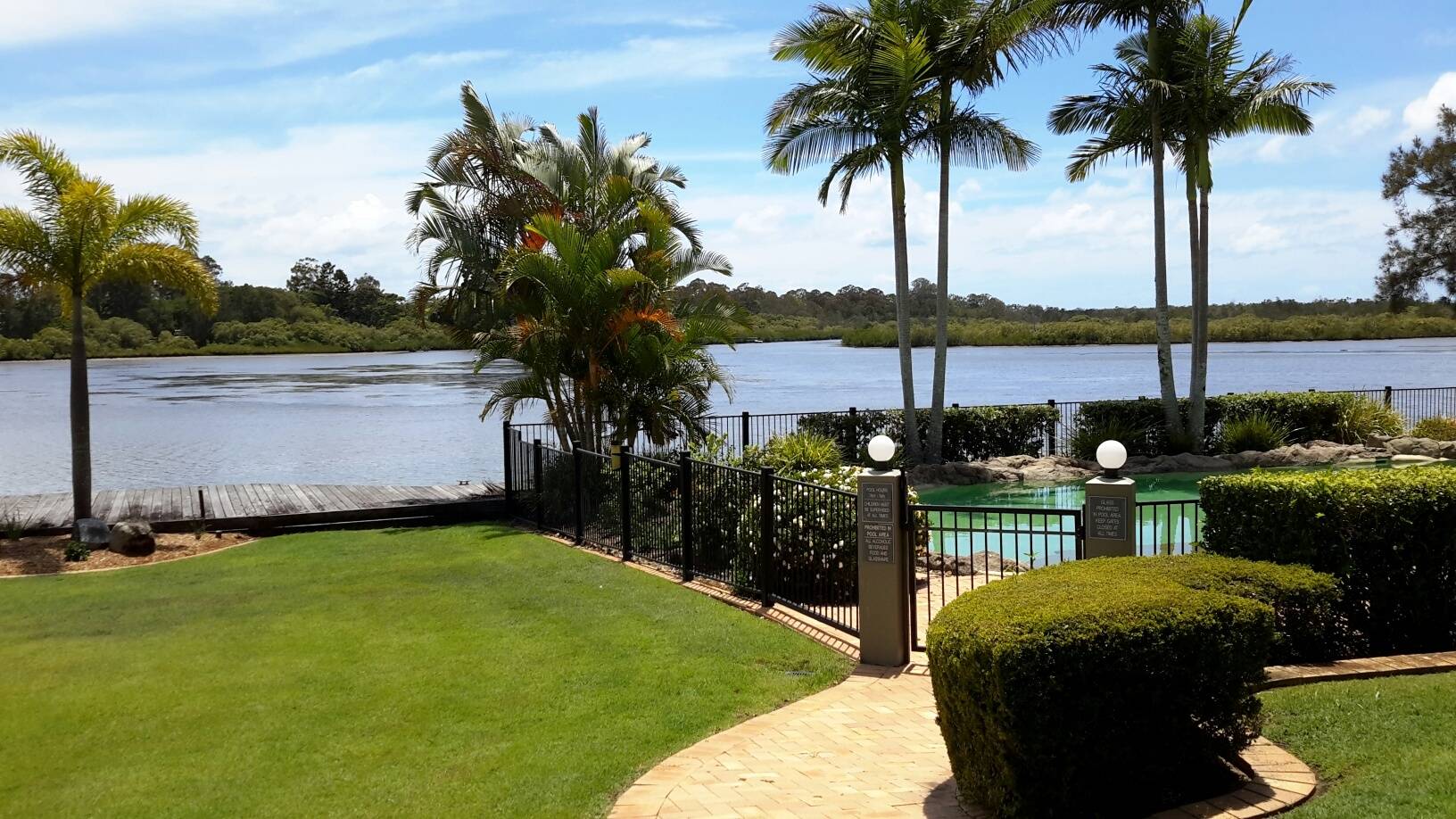 This magnificent FURNISHED 3 bedroom apartment is a gem.  Situated right behind Woolworths in Tewantin in the Noosa River Quays.  Quiet complex, beautifully maintained with riverside lawns, gardens, BBQ area, pool and timber deck on the waters edge.  The unit is beautiful, with 3 good size bedrooms, main with WIR and ensuite. Decks off all the bedrooms and a huge deck off the open plan living zone also. The living area has raked ceilings.  Fans and central heating/cooling. Gas hot plates. Electric oven. Security doors. Under building car parking with designated place.