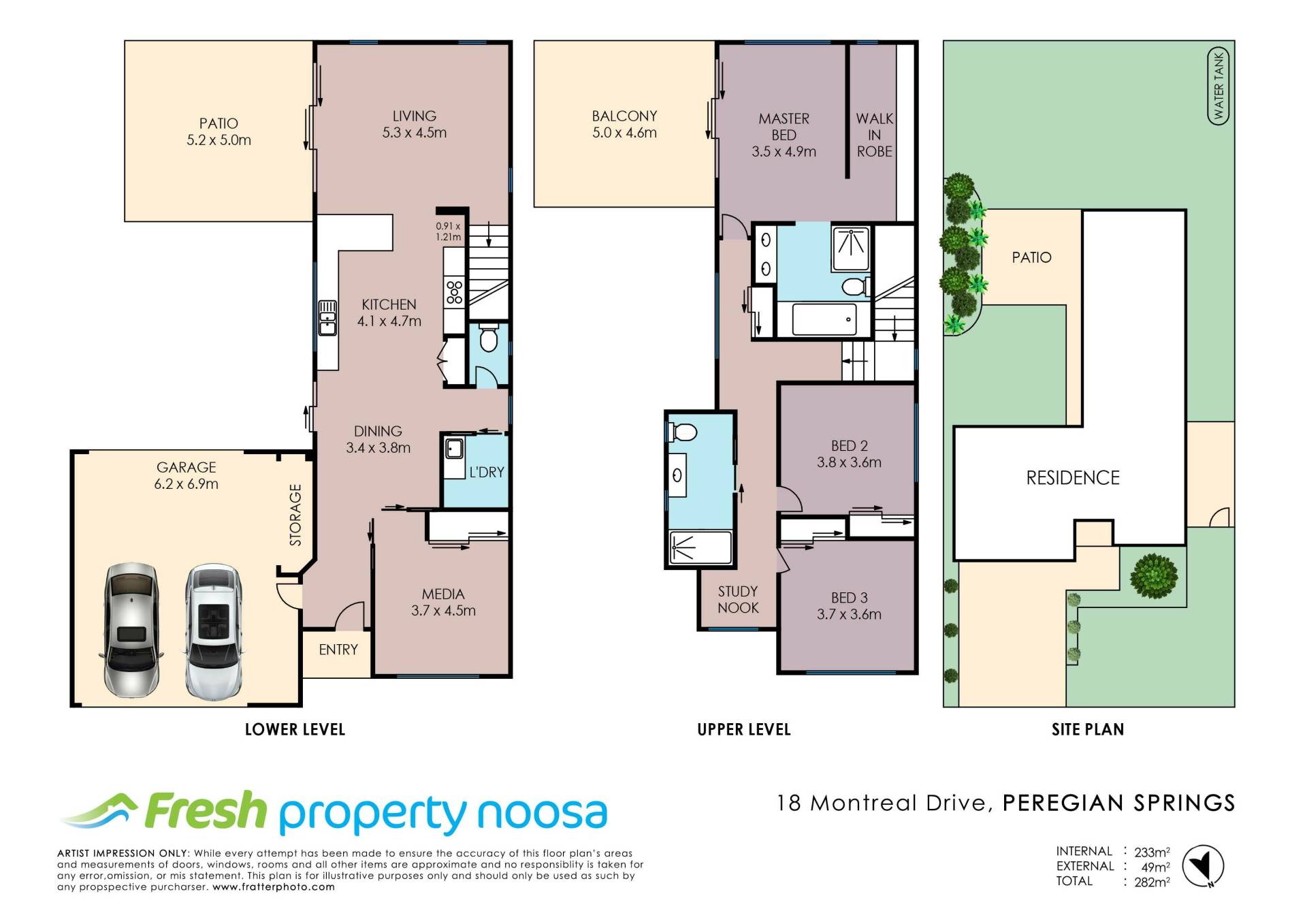 This large and spacious modern 2 storey home is situated in the much sought after, established, area of Peregian Springs.  A very spacious kitchen with Bellini gas cooking appliances connects with the open plan living and dining room. There is a separate media room, laundry and powder room all downstairs along with large covered alfresco entertaining area. Upstairs has a large master bedroom with spacious en-suite including separate bath and even bigger walk in robe, along with large private covered balcony. Also upstairs are two more good sized bedrooms, main bathroom, and a cute study nook at the end of the hallway. The spacious double garage has remote controlled doors (front and rear) giving you access through to the back yard. The yard is fully fenced with easy care lawns and established gardens. Have we mentioned ‘spacious”? This property also has an excellent size yard, being fully fenced with easy care lawns which will ideally suit families and their loving pets. The home is close to schools & main shops and beaches.