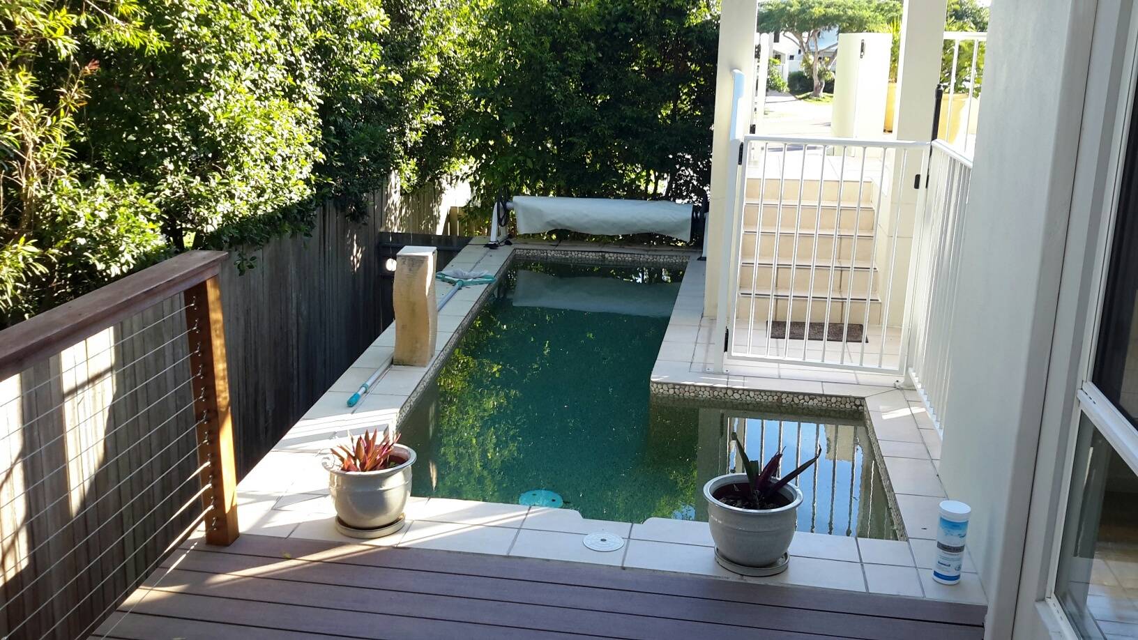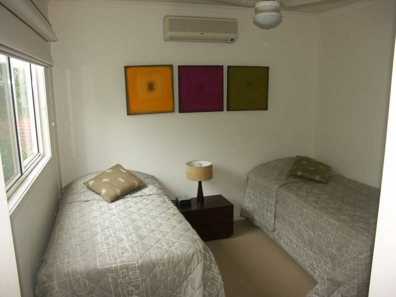 This unique townhouse is in a gated block of three units, quiet court, very close to Gympie Terrace, Thomas Street. It is FULLY FURNISHED, has 4 split system air con units plus fans, also has 2 bedrooms with a third room more like an office with bifold doors that also can be used as a bedroom.  There are 2 bathrooms, modern kitchen, excellent roof top deck area with views of Noosa Waters waterways.  This property also consists of laundry, 3 toilets, fantastic new deck areas around the private gas heated plunge pool which is only for use by occupants of this unit.  Large garage, huge front elevated deck area with BBQ and outdoor setting. Just a short walk to Noosa River/Gympie Terrace. No Pets. Excellent value at $700pw and available now, offering a lease for 6 months.