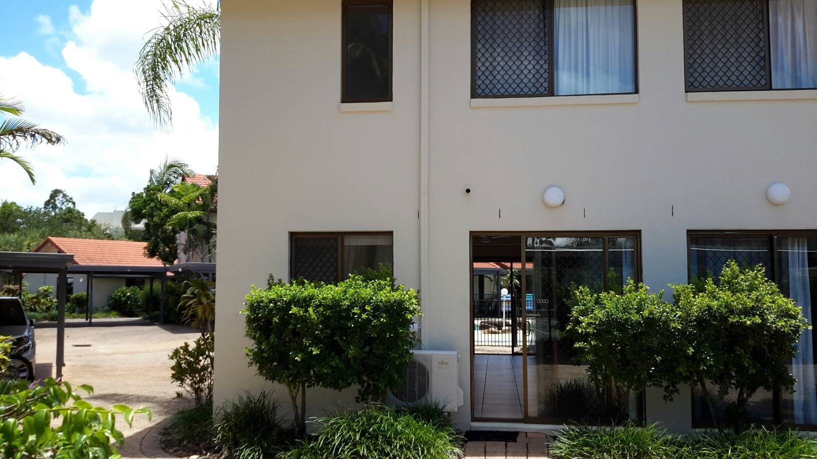This unfurnished townhouse features, dishwasher, washing machine, air con and fans. Bathroom and 2 beds upstairs. Carpeted floor and tiling. Swimming pool at front of unit, plus Tennis Court, Carport. No pets. Resort complex.