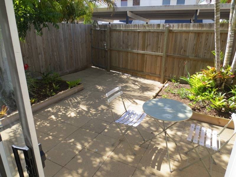 It is FURNISHED with 2 bedrooms (both upstairs), large downstairs kitchen, dining and lounge areas, 2 toilets (one up one down), one bathroom, separate laundry, air con, separate private front and rear paved & fenced courtyards. The rear courtyard leads out to the communal carport area where carport for unit 7 is located..