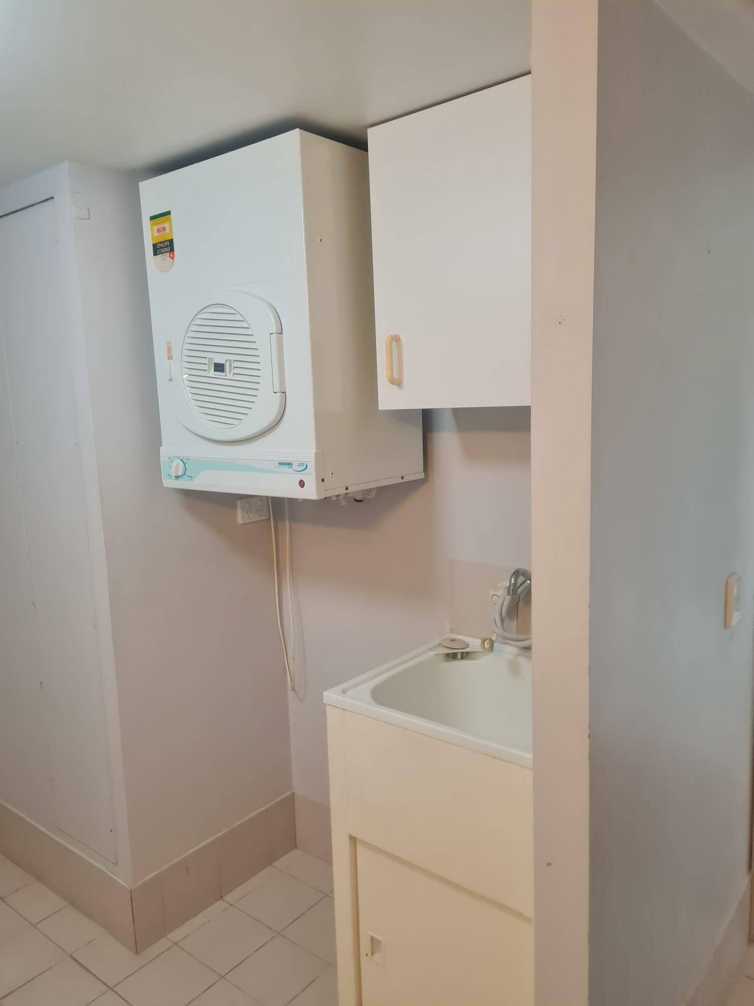 Laundry with sink & dryer.