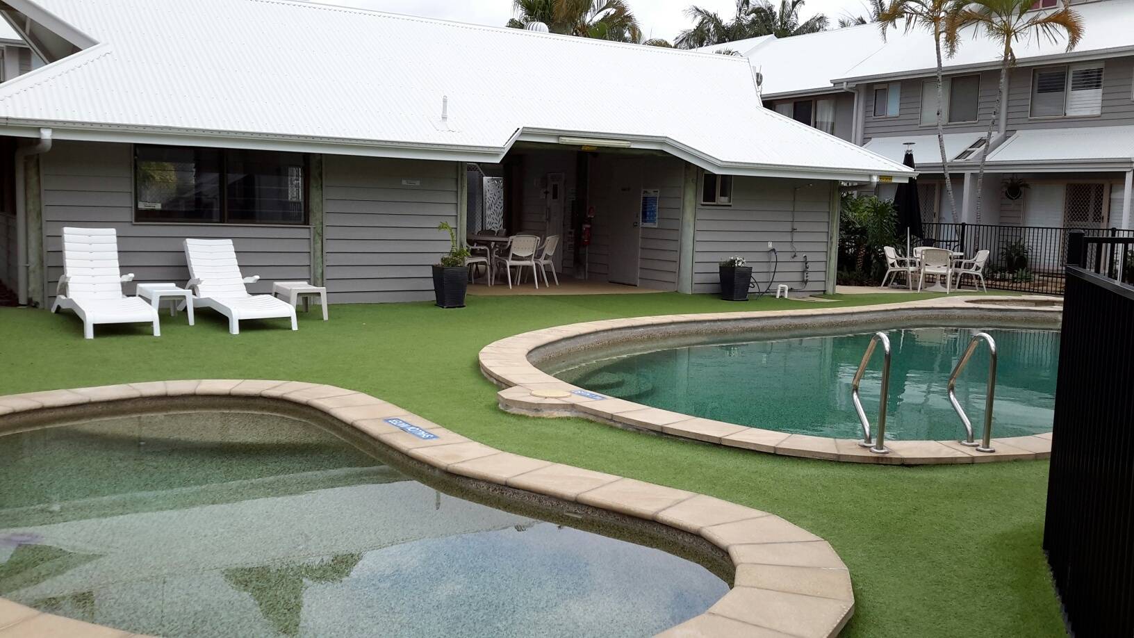Small backyard area, No pets, carport, neat and tidy, air con and more... There is both a swimming pool and a tennis court in the complex also.