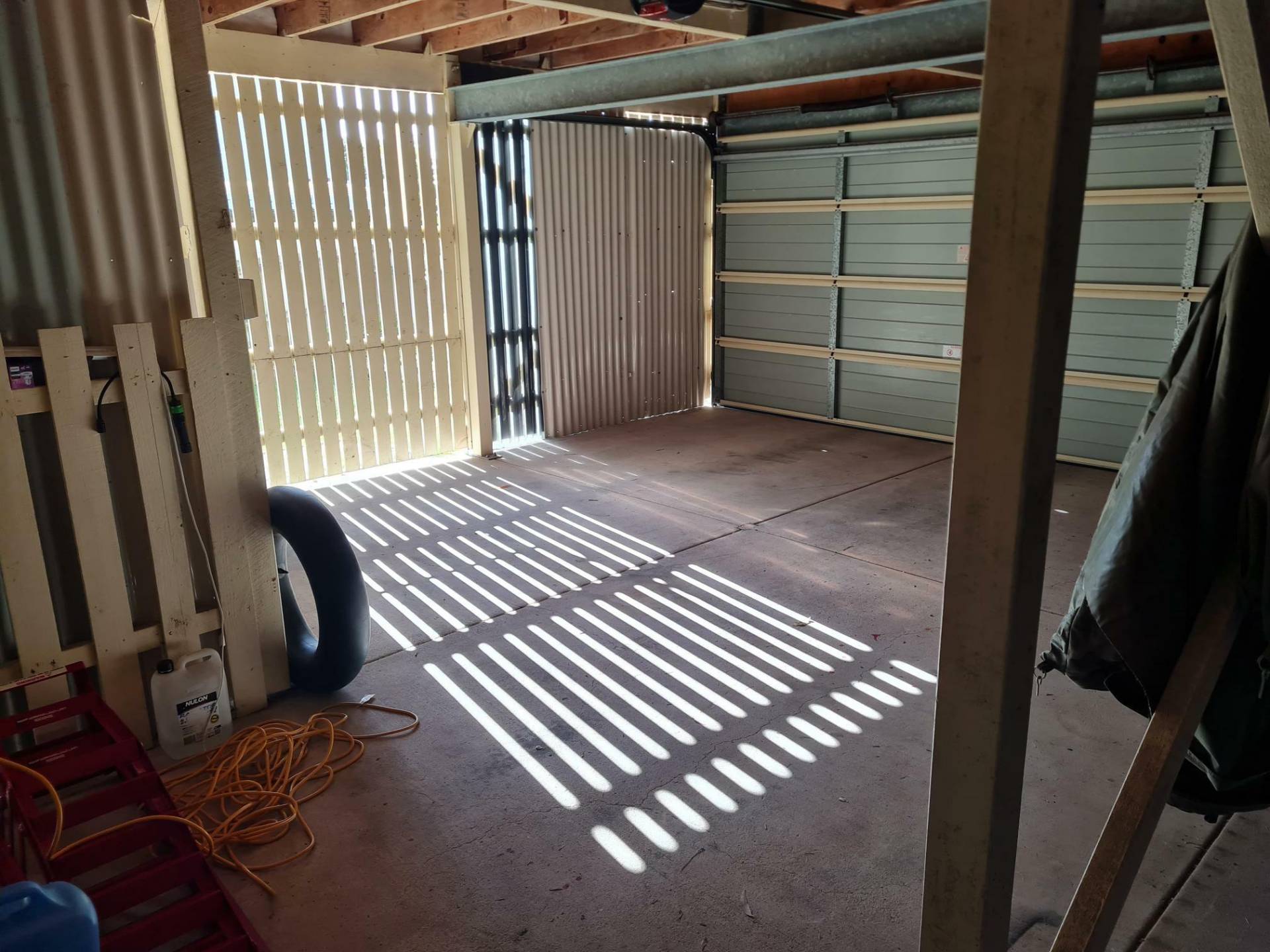 It has a large double garage under the house with 2 large storage areas plus a huge laundry with toilet.
