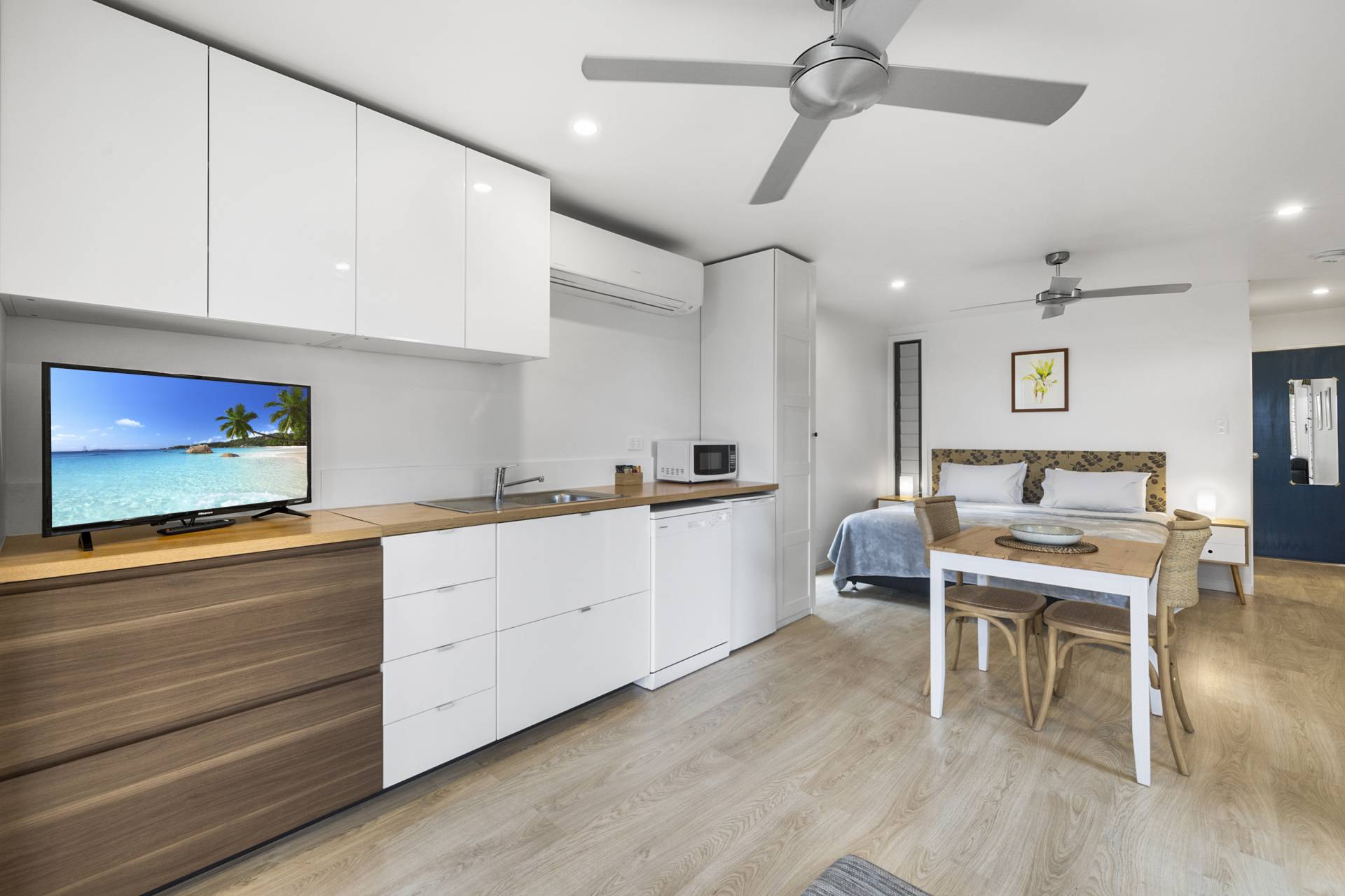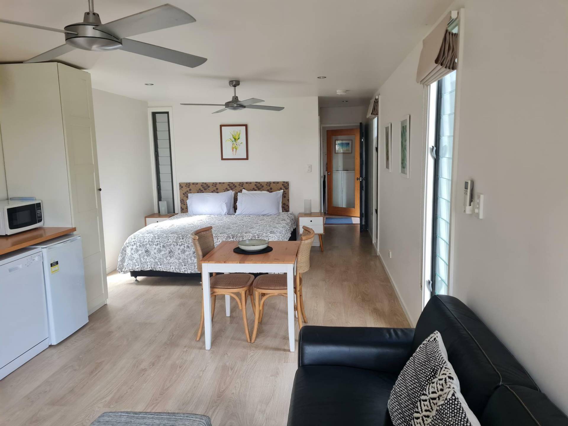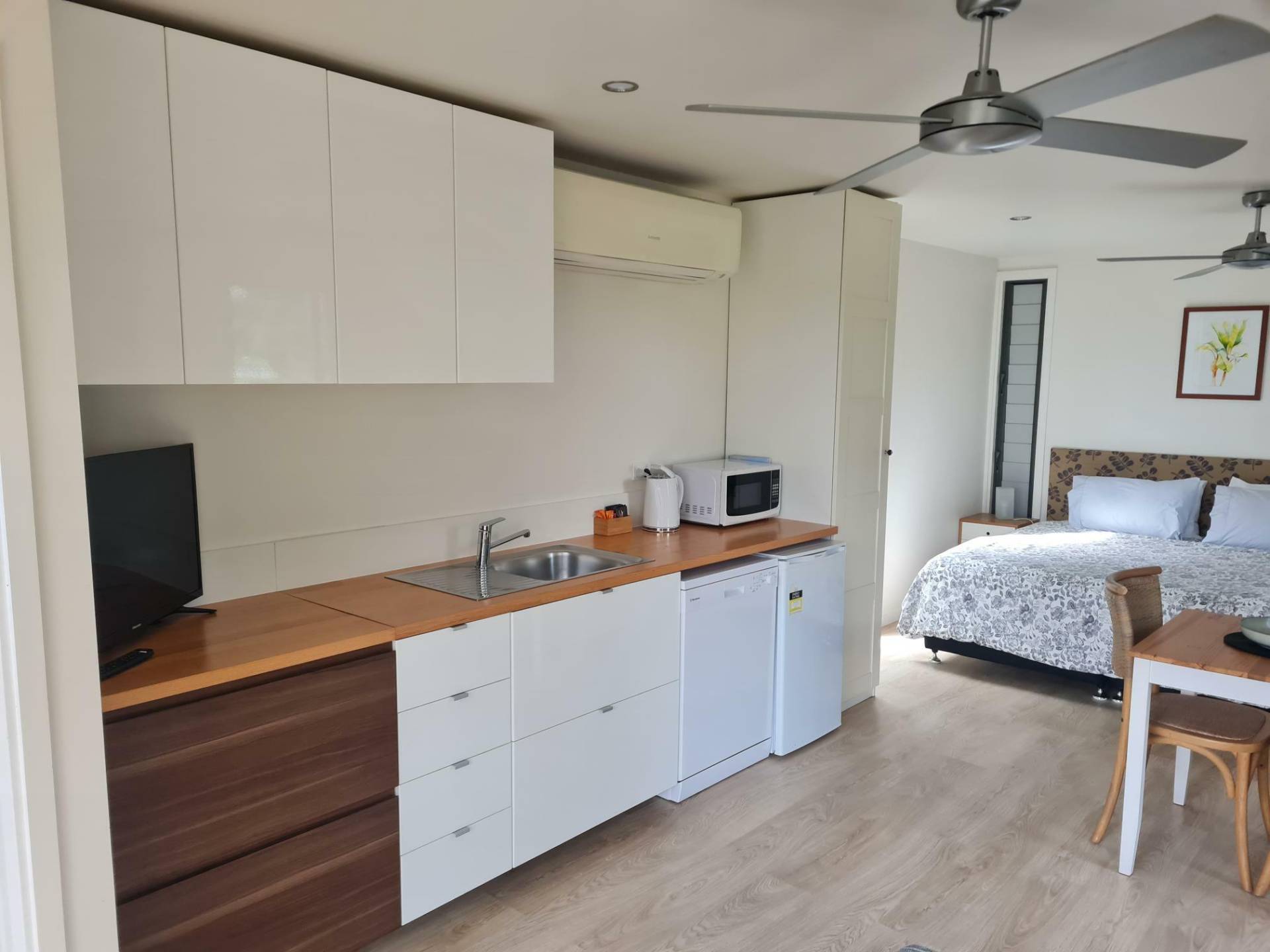 Split system air con plus 2 ceiling fans.