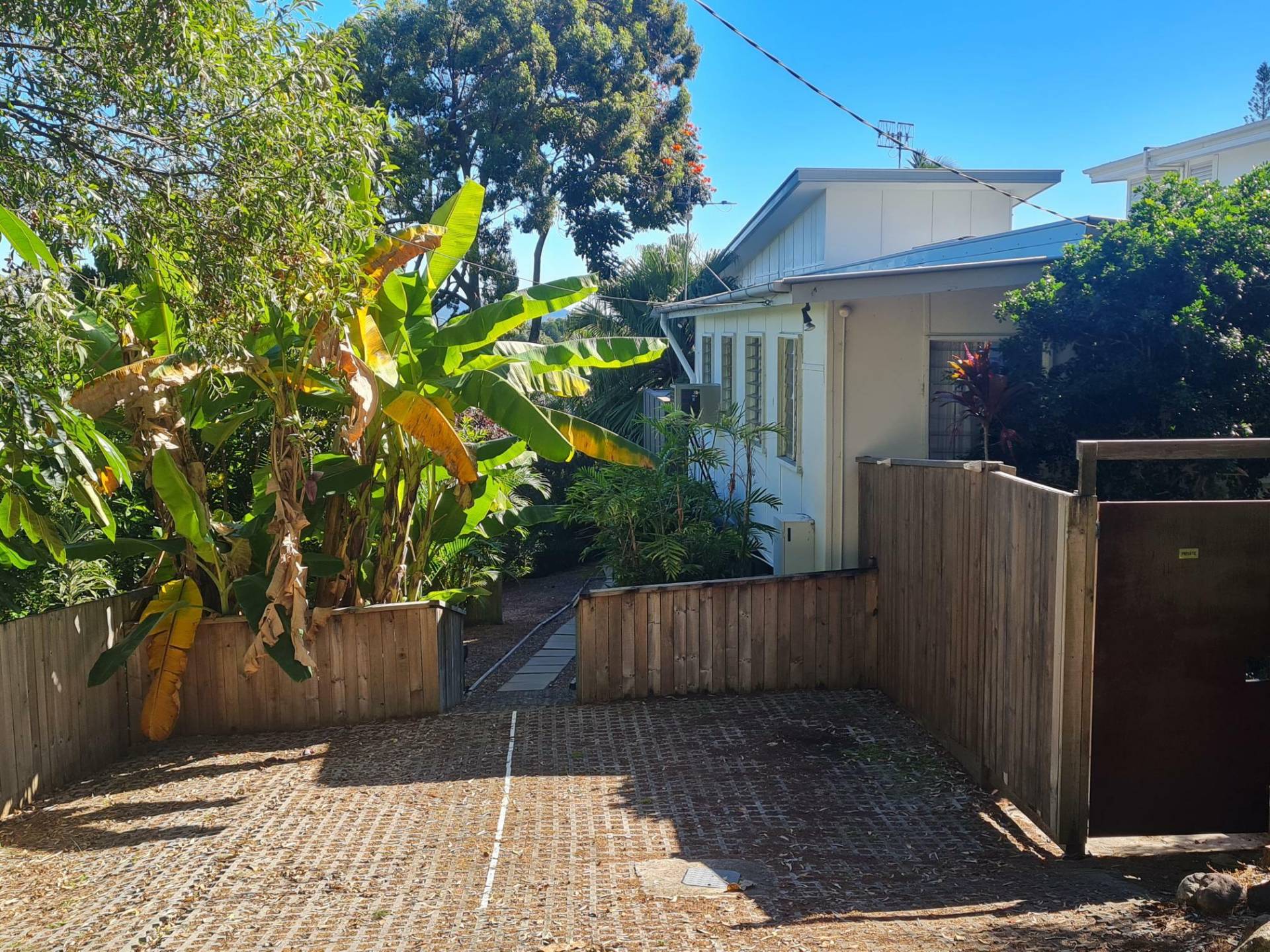 Quiet spot, shared laundry, some storage area under front apartment. This unit is one of two that are built behind an older front one.