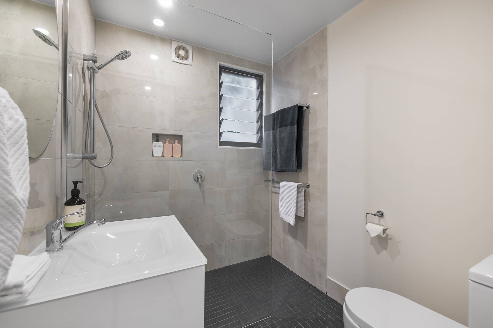 Beautiful separate bathroom and toilet.