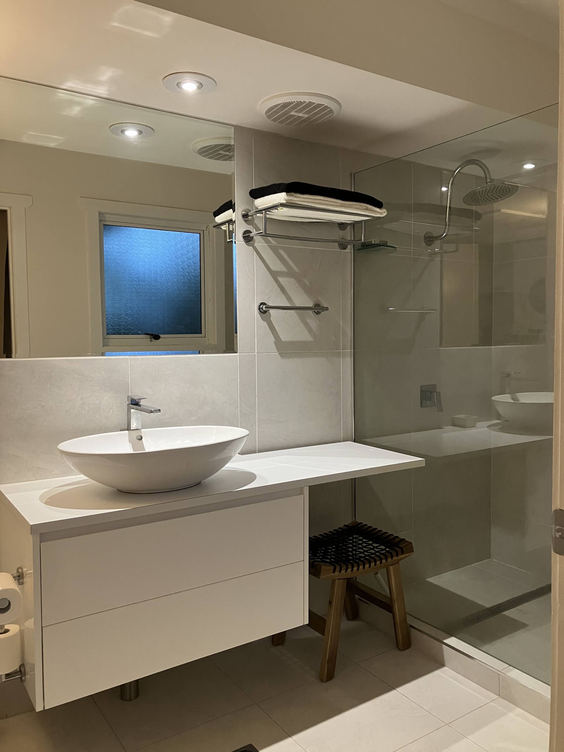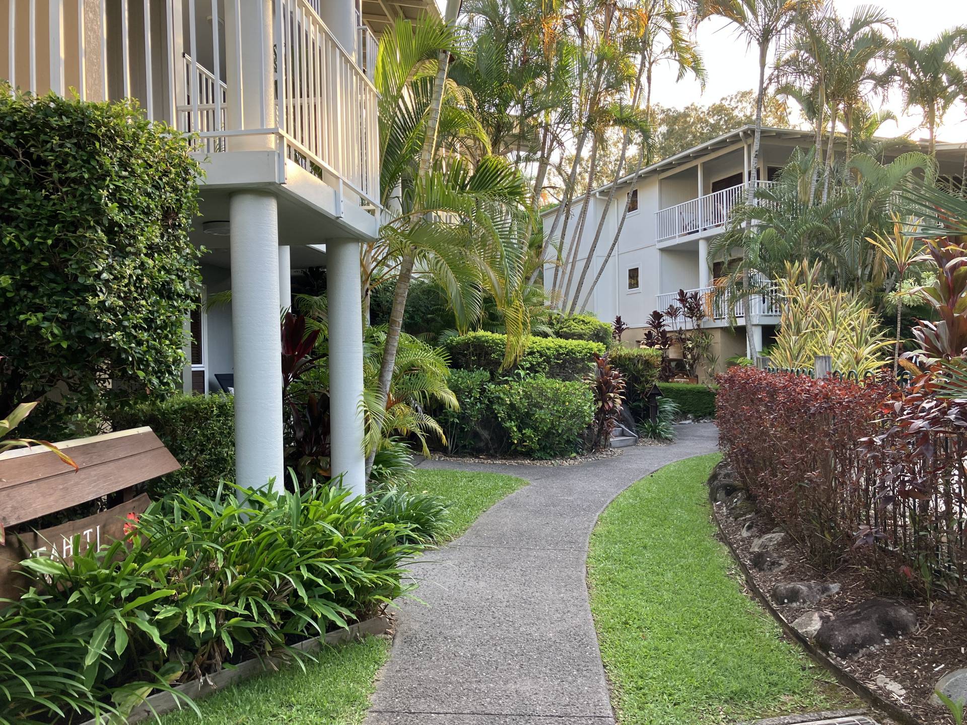 This apartment is on the ground floor, one level, beautiful fixtures and fitting, lovely main bedroom and ensuite, lovely deck area off the living room and located at the back of the complex, which is very quiet.